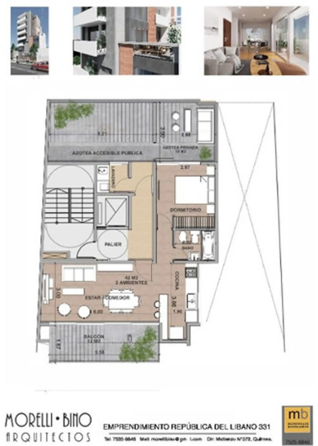 Departamento de 1 dormitorio en venta, ubicado sobre calle República del Líbano, entre Av. Vicente López y Roque Sáenz Peña (Quilmes, Buenos Aires). Situado en un piso alto con acceso por ascensor, cuenta con doble disposición y orientación noroeste, lo que garantiza excelente luz natural y ventilación cruzada.