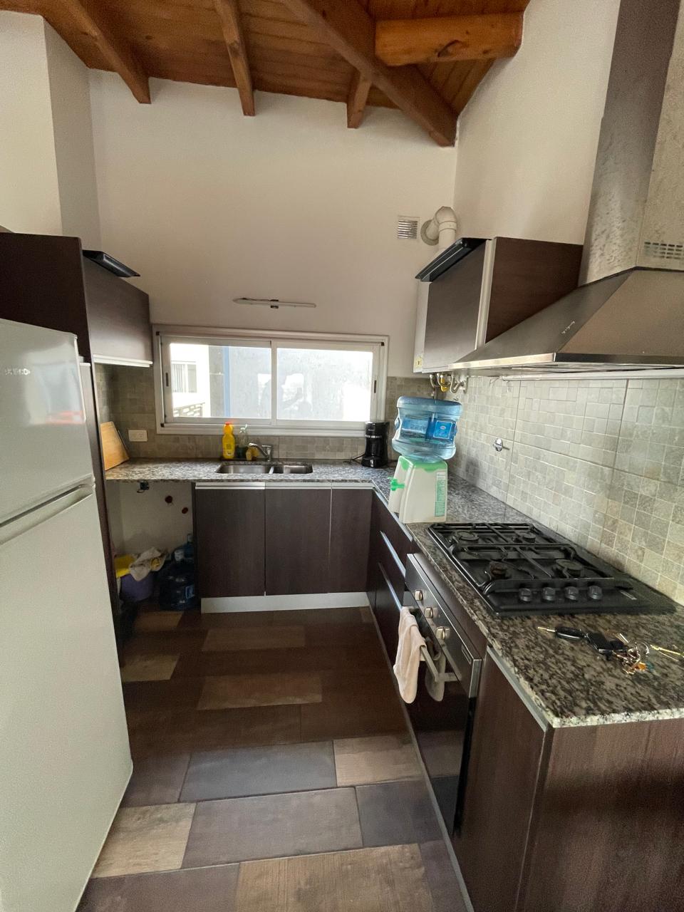 Cocina semiintegrada, equipada con anafe a gas y horno eléctrico empotrado.